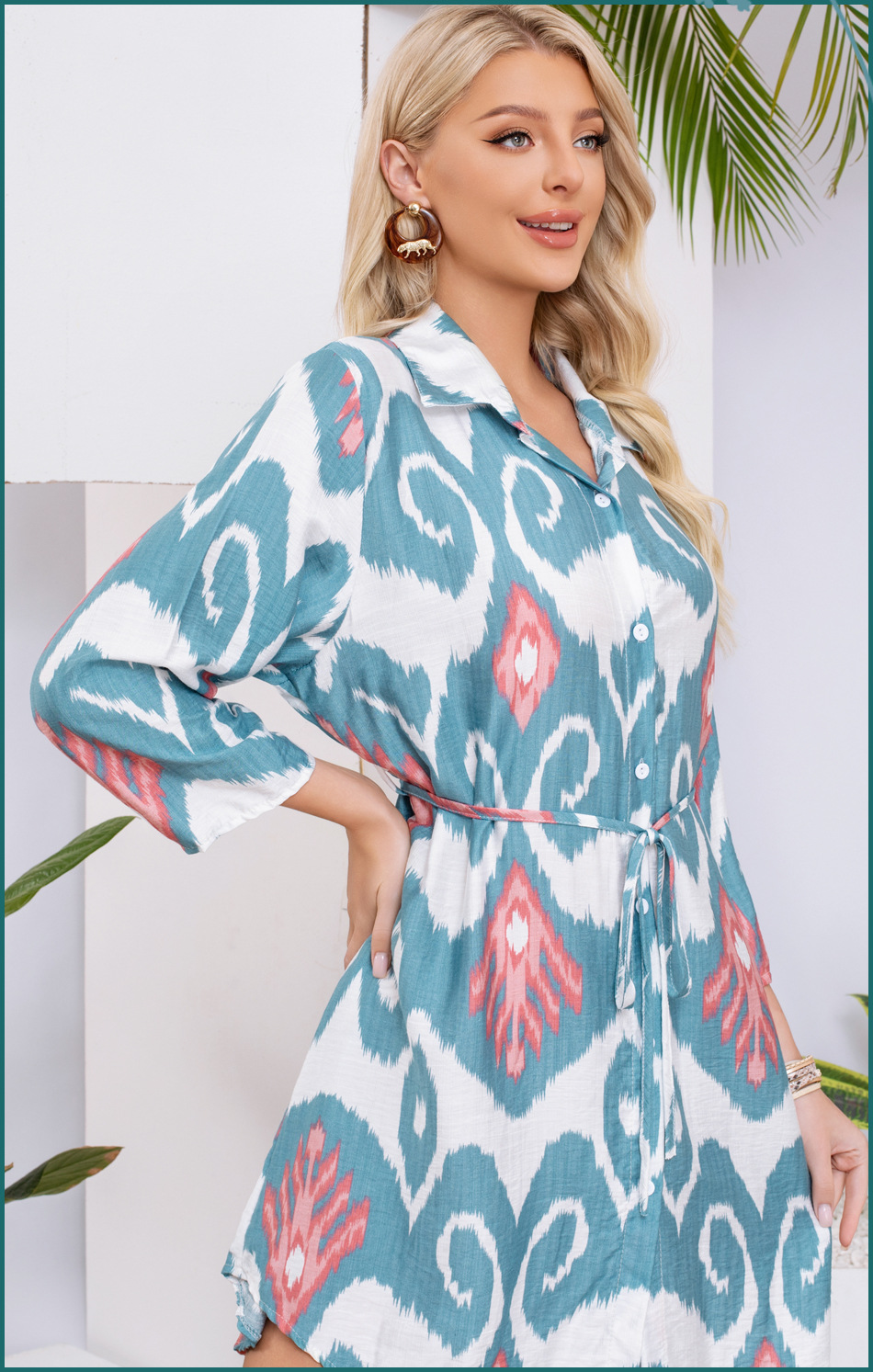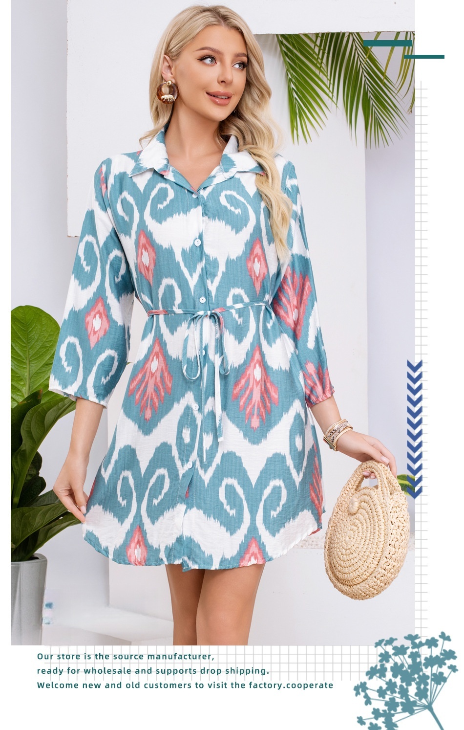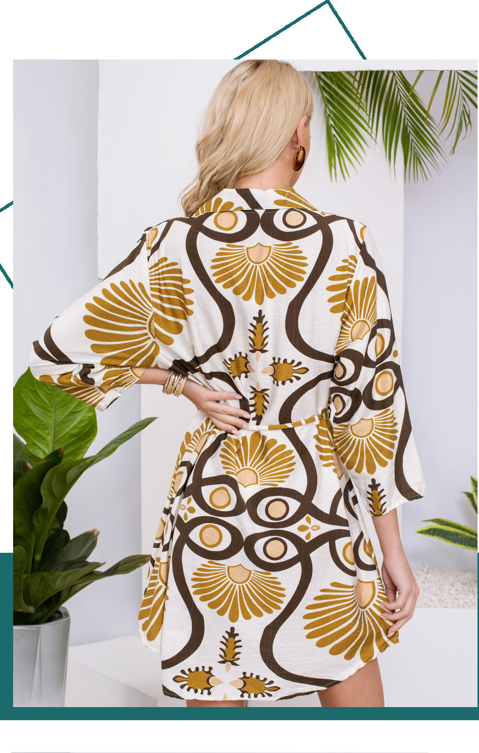 2025 new beach sun-protective cardigan printed cinched-waist bikini swimsuit jacket