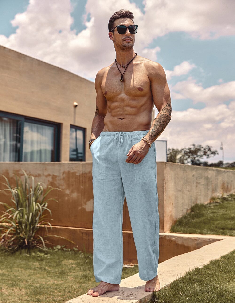 - Straight-leg Trousers --- Simple style, double-sided slant pockets and back patch pockets, loose fit, make you look great for your leisure time.