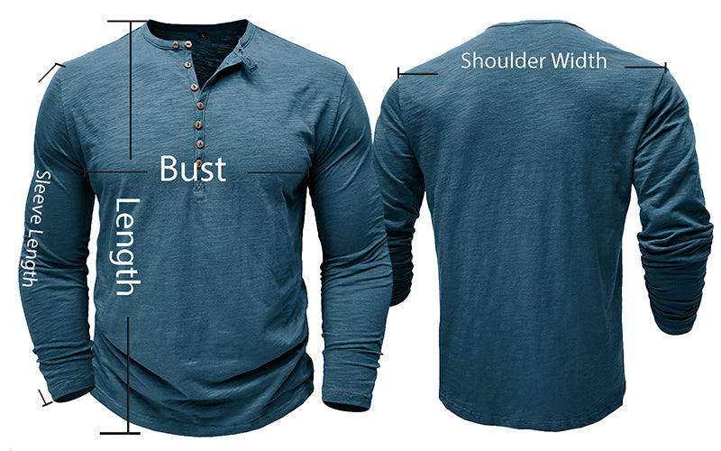 This men's long-sleeve Henley T-shirt is crafted from comfortable bamboo cotton fabric, providing you with an exceptional wearing experience. Its unique design, featuring seven buttons on the front chest, adds distinctive elements to its style.