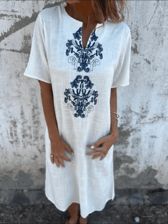 With a loose fit, flattering V-neckline and eye-catching print, this dress combines carefree style with maximum comfort. Whether you're brunching, strolling through the park or lounging at home, the dress moves with you and keeps you fresh all day long.