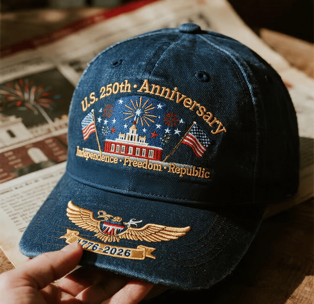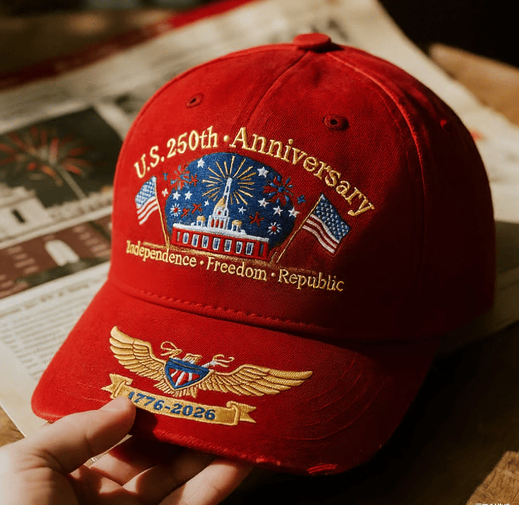 The front of the emblem is prominently embroidered with the iconic Independence Hall logo, symbolizing the 250-year glorious history of the United States towards independence, freedom and republic.Patriotic Design