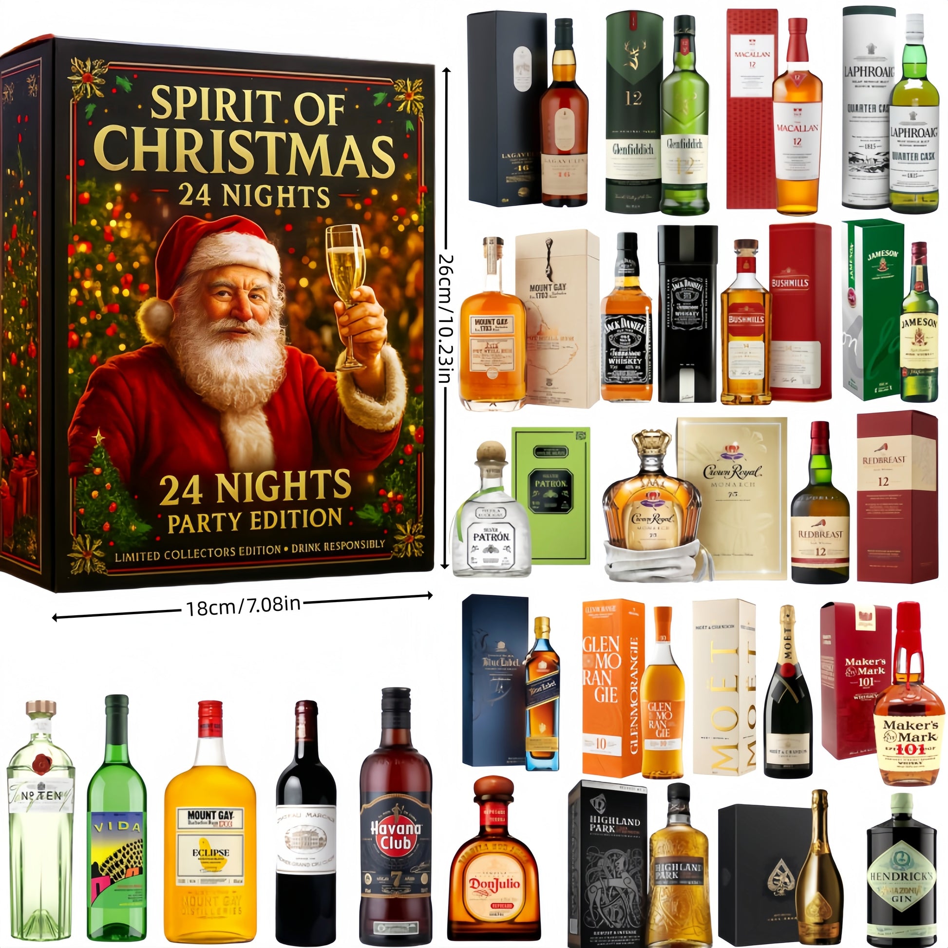 🎄 Featuring 24 premium mini bottles—from whisky and rum to champagne and tequila—each night unveils a new taste of luxury and joy.
