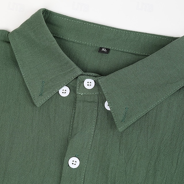 Men's Linen Button Down Shirt Summer Beach Long Sleeve Casual Solid Color Lightweight Breathable