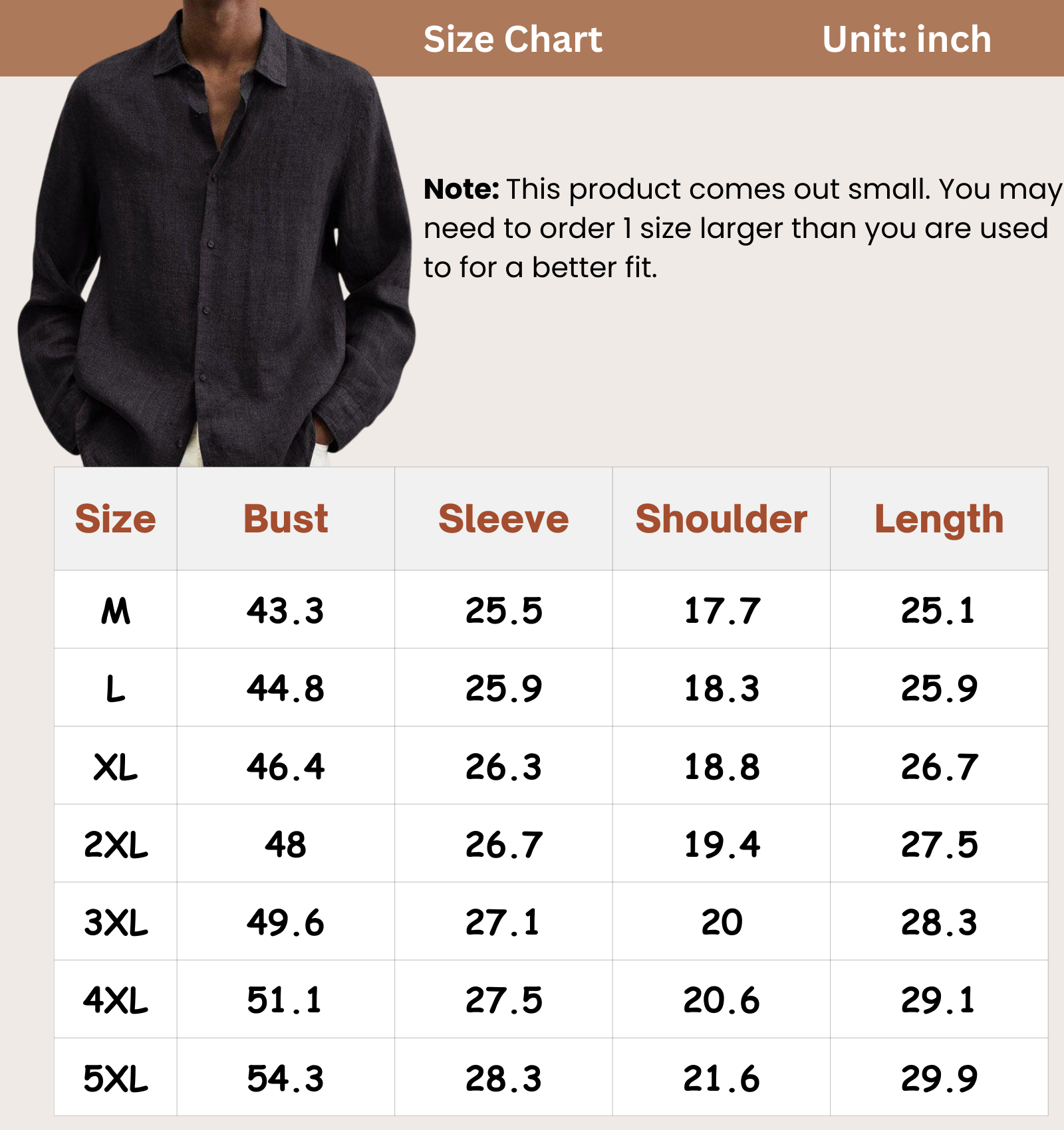 Size Chart (inch):