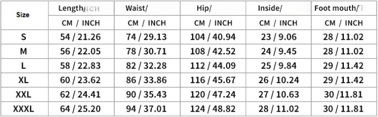 - Waist: Elastic waistband with adjustable drawstrings for a custom fit.