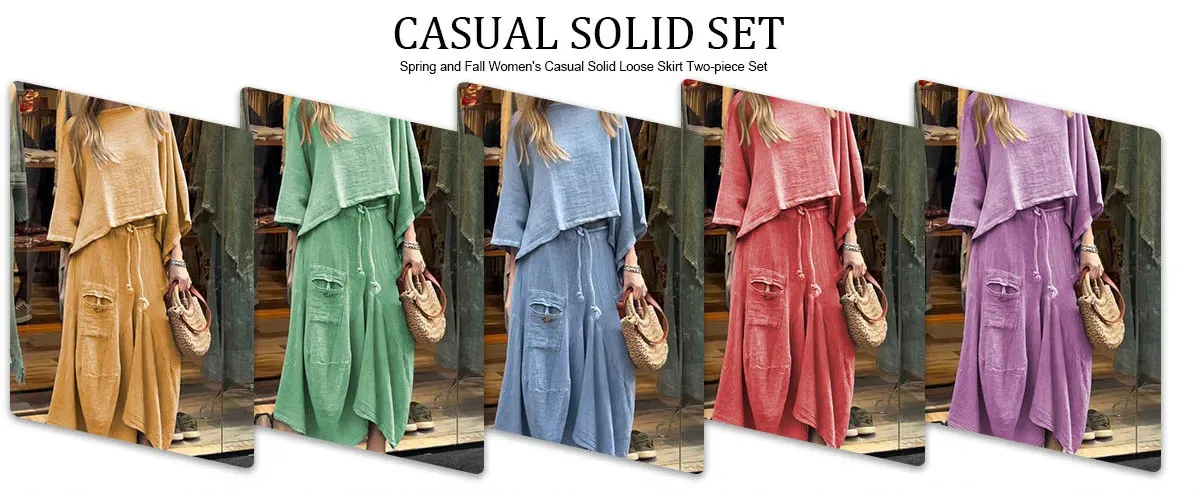 Still struggling with how to dress stylishly in spring and fall? Our casual solid loose skirt two-piece set can help you solve your wardrobe problems.