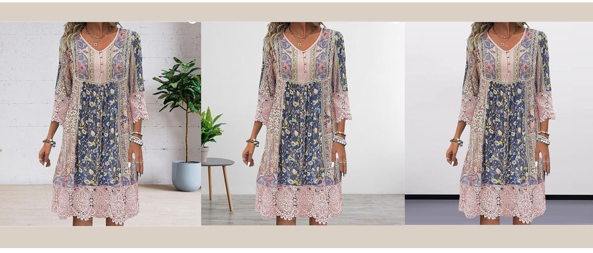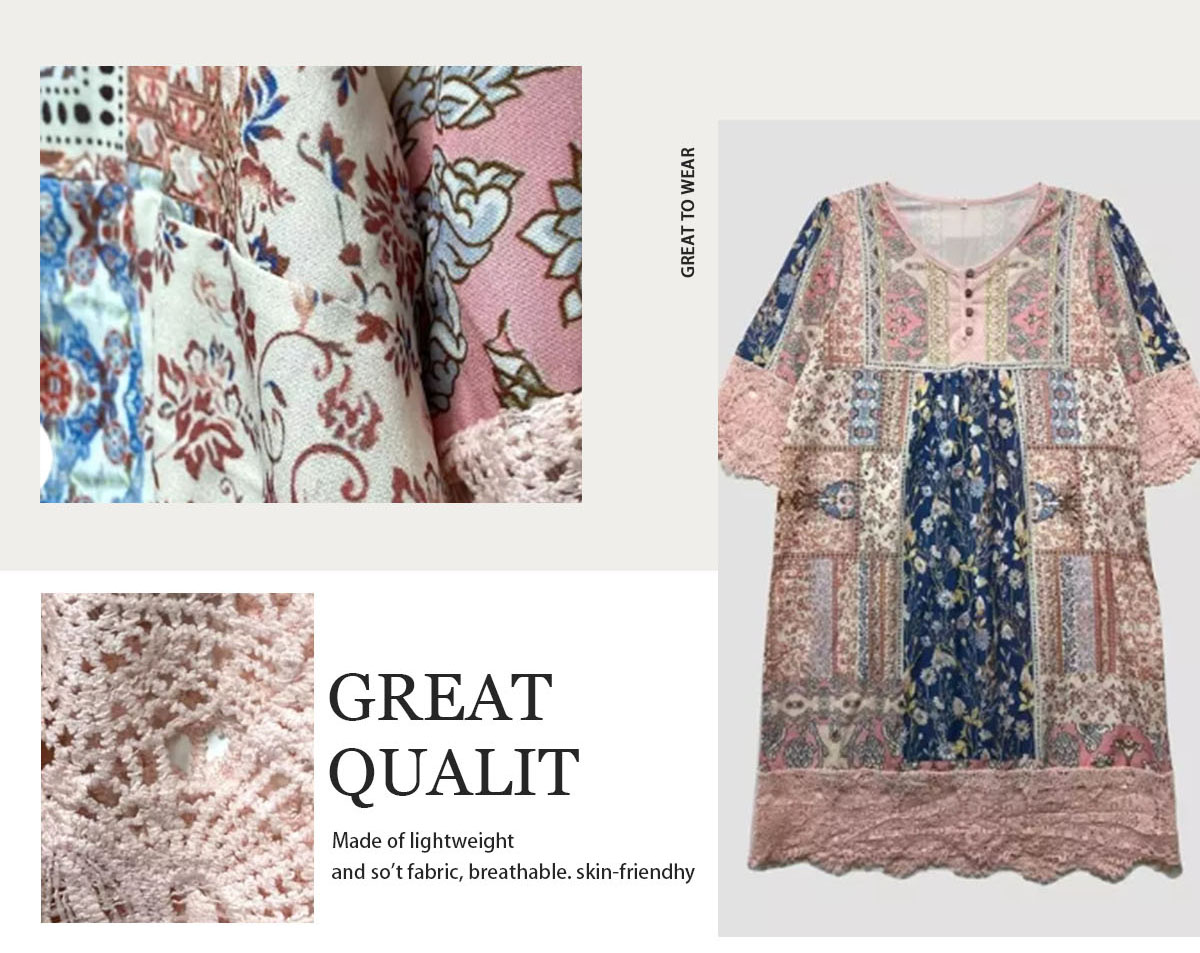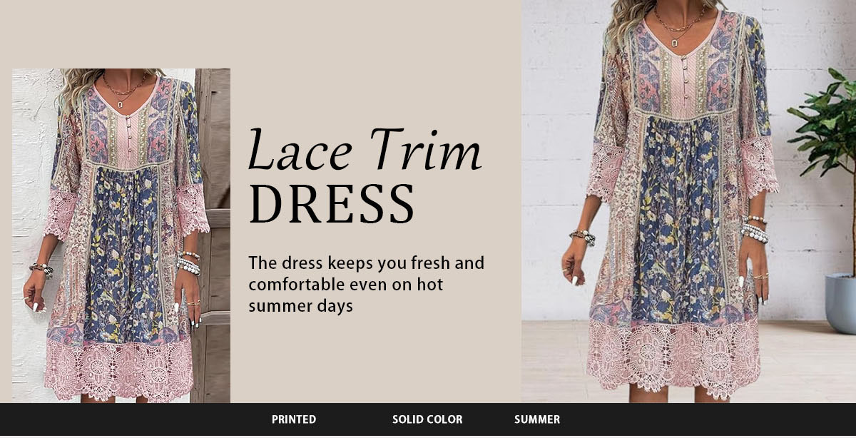 Spring-Summer Vintage Printed Lace Trim Dress