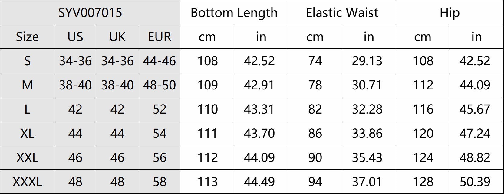 - Waist: Elastic waistband with adjustable drawstring
